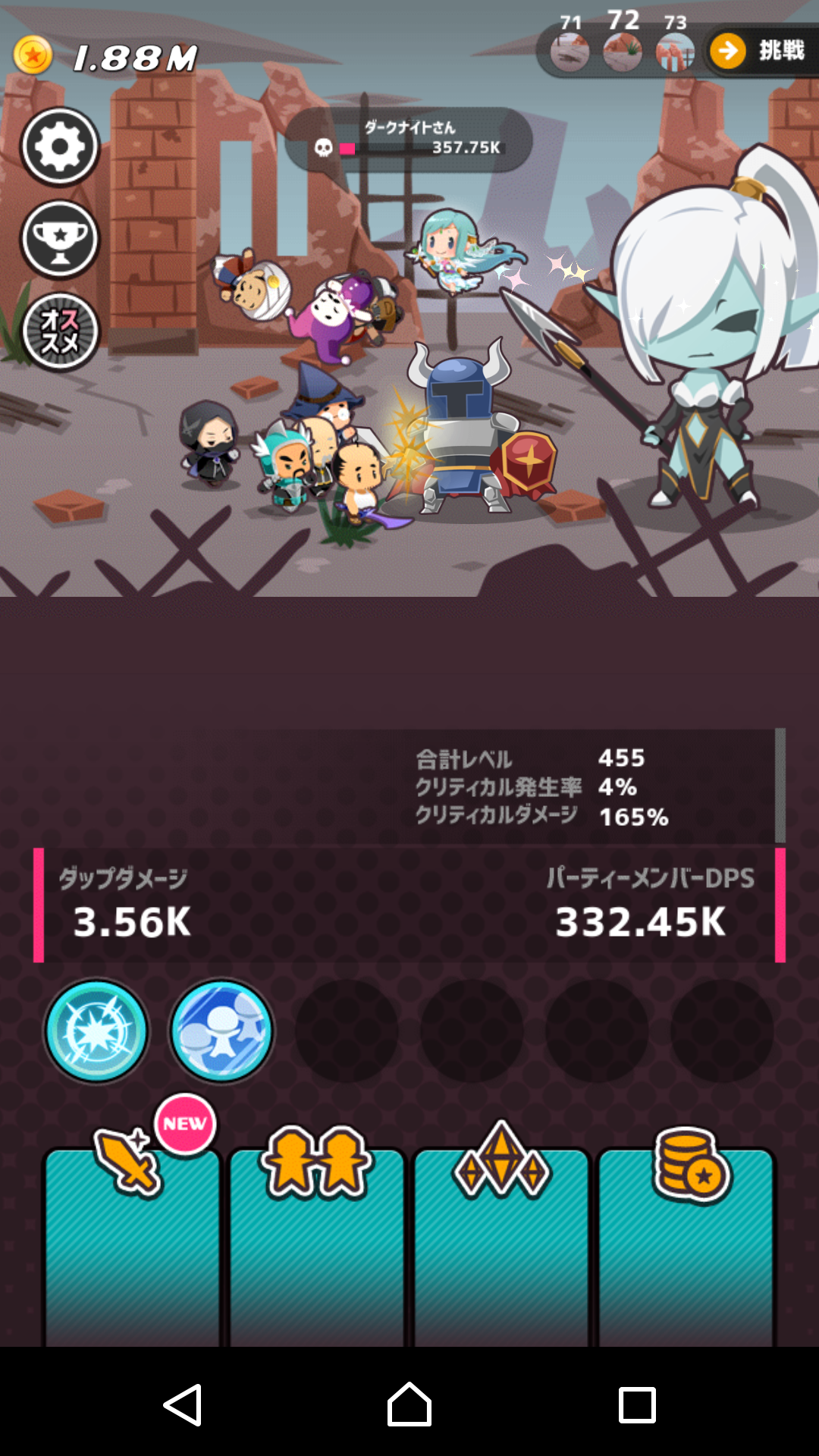 仲間を増やすことで楽ができます。レベルを上げるか、より強い仲間を入れるか悩むところです。また、ダイヤで強化することもできるみたいです。
